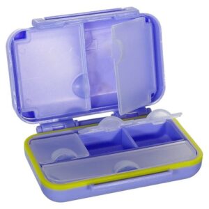 Travel pill case with different compartments inside. 6 different compartments in total.