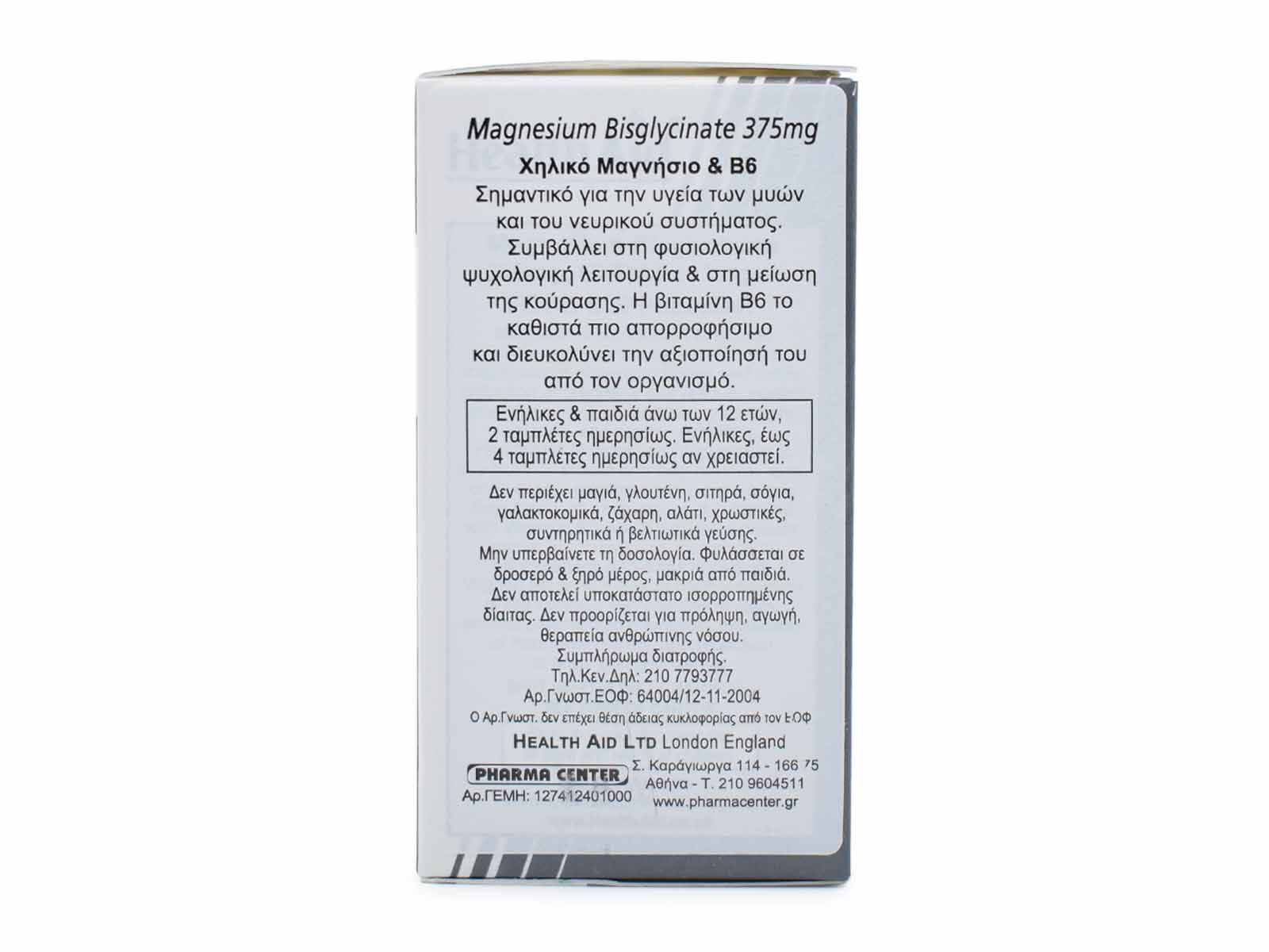 Health Aid Magnesium Bisglycinate 375mg & Vitamin B6 – 60tablets