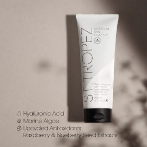 Now with a lighter, fast-absorbing and non-sticky texture, St. Tropez’s Gradual Tan Body Lotion Light-Medium is the perfect way to build-up a glorious glow and lock in hydration for up to 72 hours.