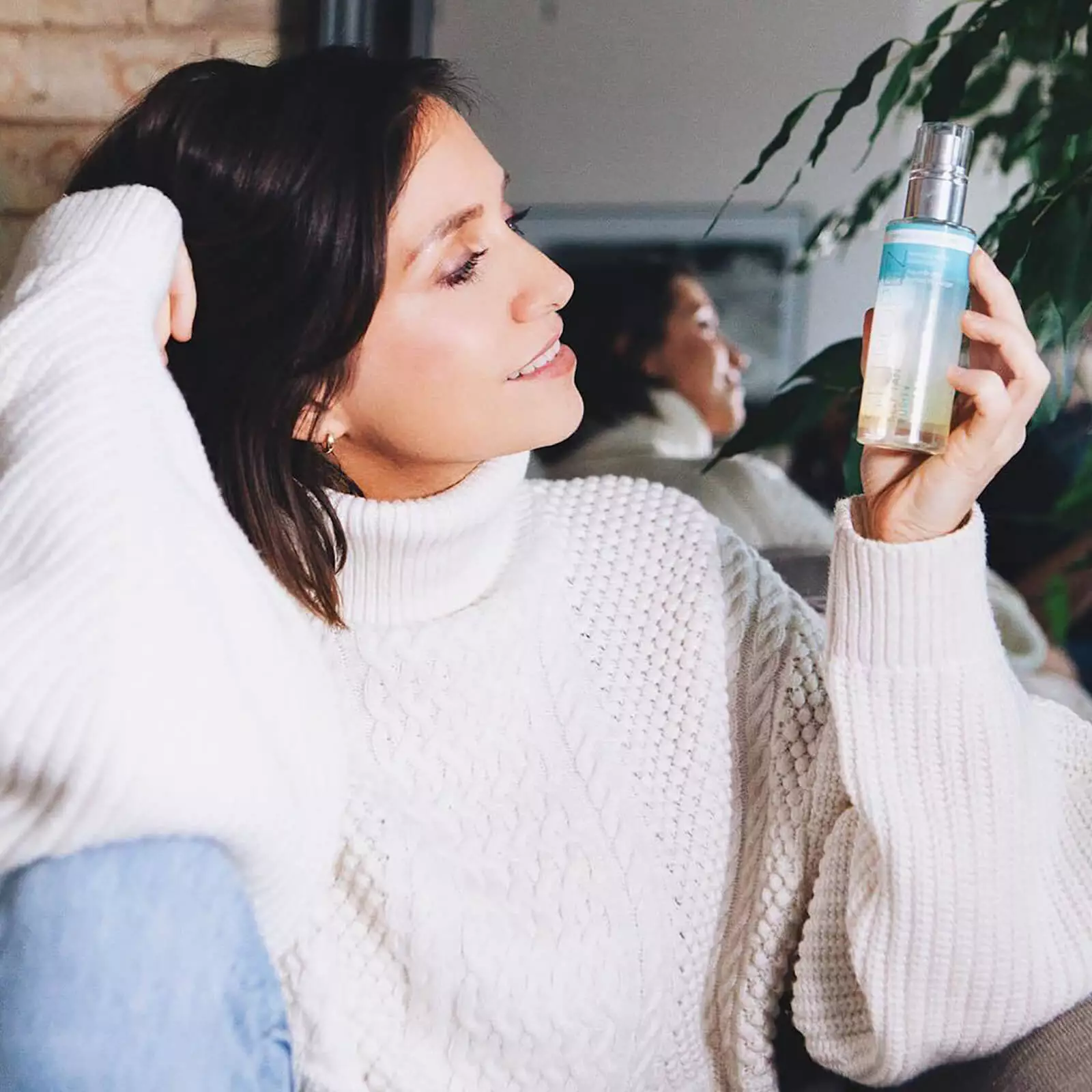 - APPLY Close eyes and spray 5-6 full pumps directly over face, neck and décolletage. No need to rub or blend in. Can be used under or over makeup.